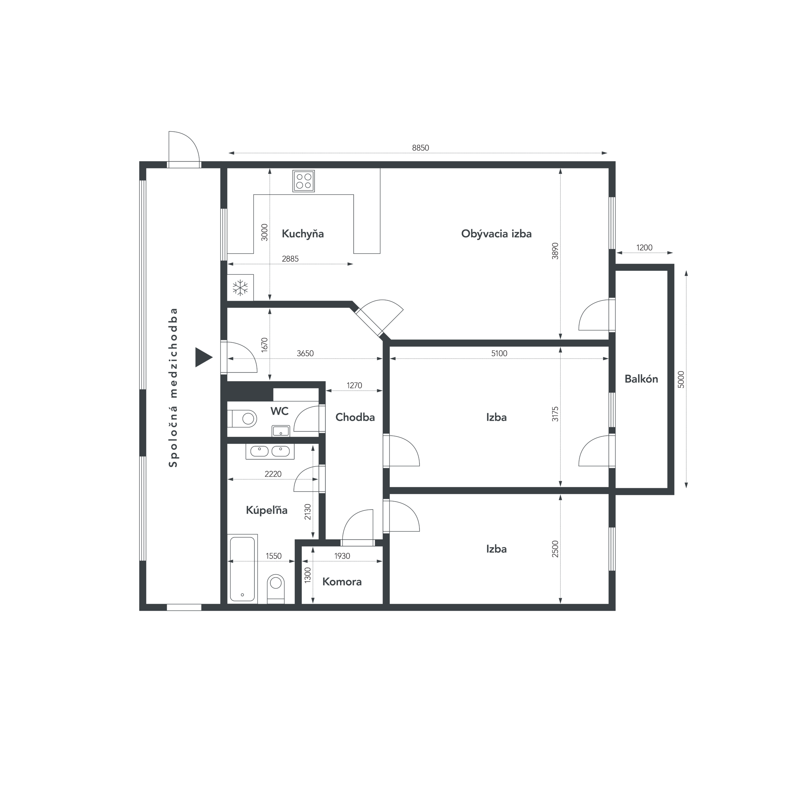 zdieľaná chodba s vlastným úložným priestorom